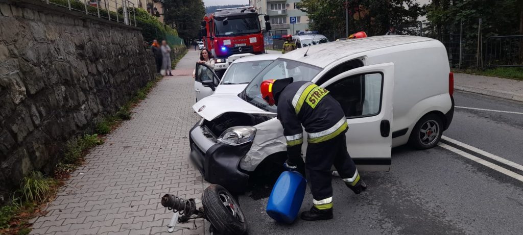 Kolizja na ulicy Kraszewskiego w Krynicy-Zdroju
